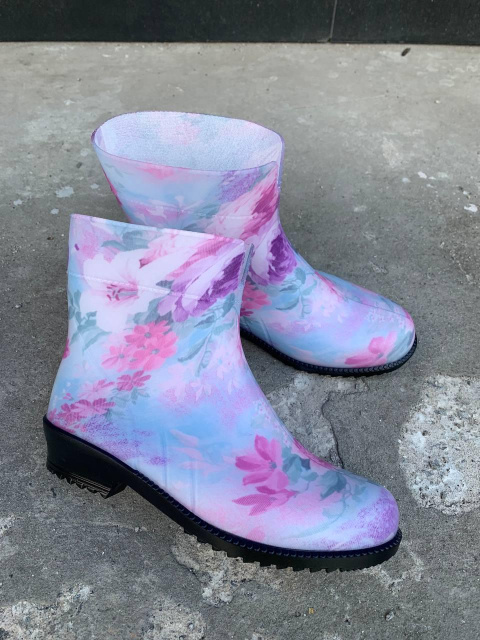 Женские резиновые сапоги  Цветы на голубом Размерний ряд: 36-41 Верх обуви: ПВХ без фталатов Подошва: ПВХ без...
